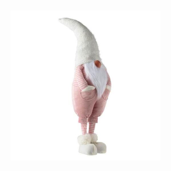 Gnom decorativ de Crăciun, roz pastel cu căciulă albă