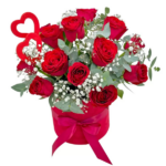ianuarie 28, 2025Aniversarea iubirii, cutie rosie cu trandafiri rosii si 2 inimi lemn